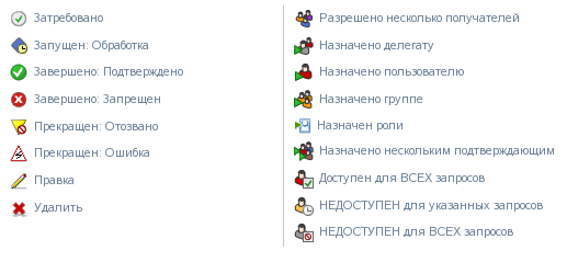 Указывает, что конкретная задача рабочего процесса была делегирована другим пользователем. Эта задача показывается в очереди текущего пользователя, поскольку пользователь, которому она была назначена прежде, объявил о своем отсутствии. Текущий пользователь может видеть задачу, так как он является делегатом прежнего владельца задачи.