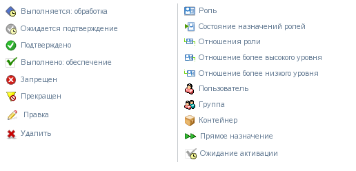 При использовании вкладки Роли и ресурсы Вы видите во многих местах значки, которые несут важную информацию. Вот значки, которые Вы видите: