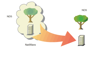 При выполнении миграции данных с исходного сервера NetWare® 4, NetWare 5 или NetWare 6.5 на целевой сервер NetWare мастер миграции Novell® NetWare версии 6.5 копирует файловую систему и базу данных NDS® с исходного сервера на только что инсталлированный целевой сервер NetWare.