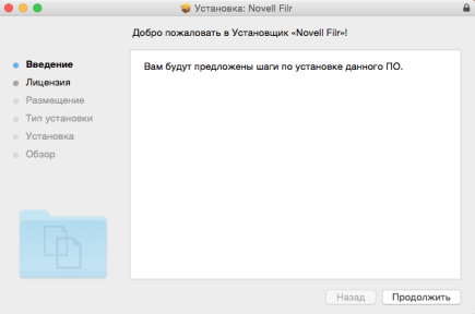 По окончании загрузки откройте файл NovellFilr-версия.pkg.