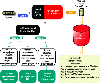 Иллюстрации порядка работы NSSO см. в статье "Novell Single Sign-on" издания AppNotes за ноябрь 1999 г.