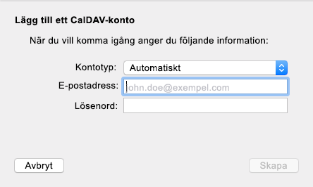 I Mac Calendar väljer du Kalender > Lägg till konto.