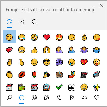 Använd Windows-tangenten + . (punkt) för att öppna Emoji-fönstret.