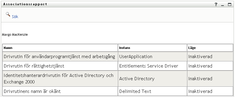 Ange ett namn. Associationstabellen visar associationer för det namnet.