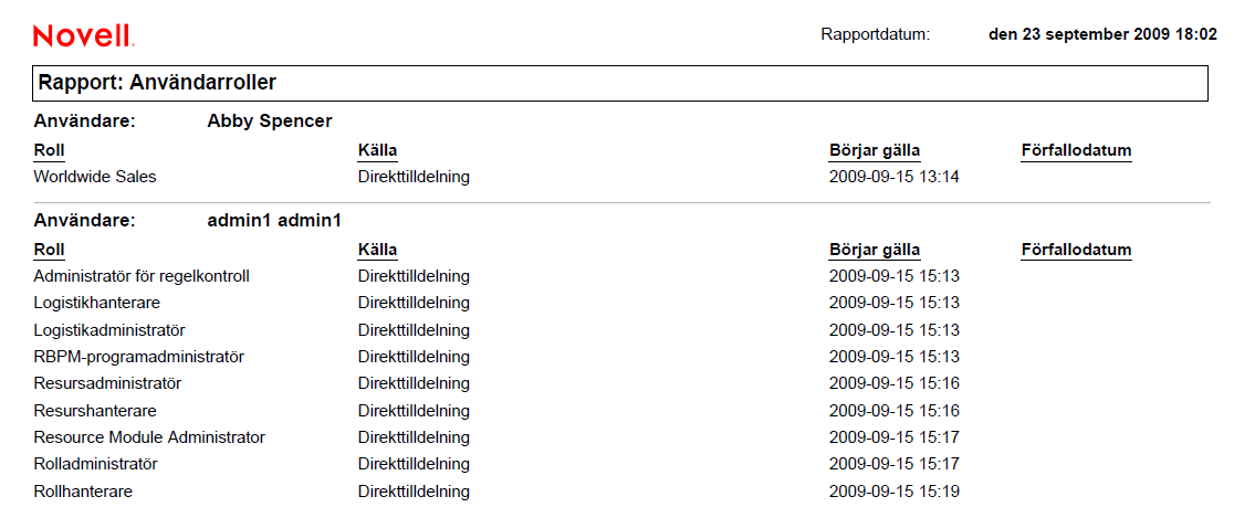 Figur 19-5 Exempel på Rapport: Användarrättigheter: Användarinformation för varje rättighet