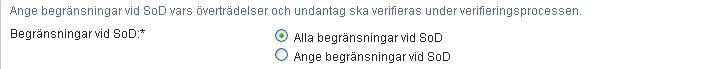 Du måste välja minst en SoD-begränsning för att starta en verifieringsprocess. Men du behöver inte välja någon SoD-begränsning för att spara en beställning.