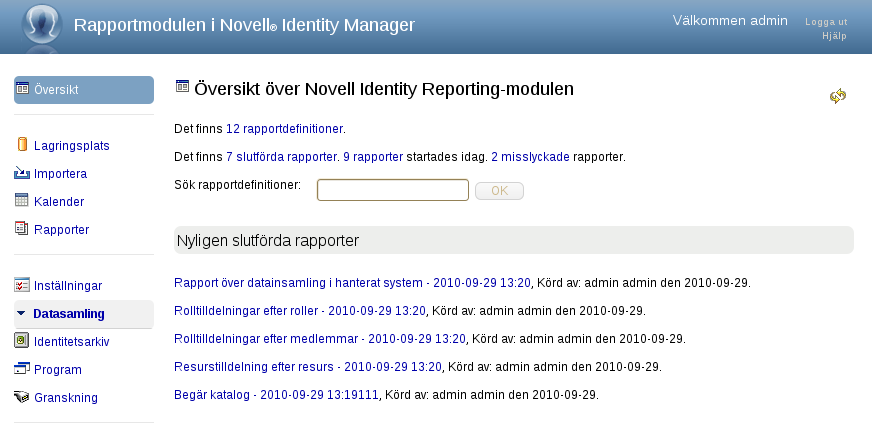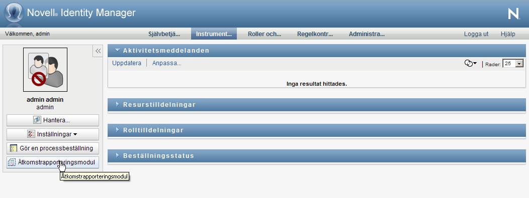 Om SSO inte har aktiverats loggar du in som rapportadministratör eller som en annan användare som har navigeringsbehörigheten .