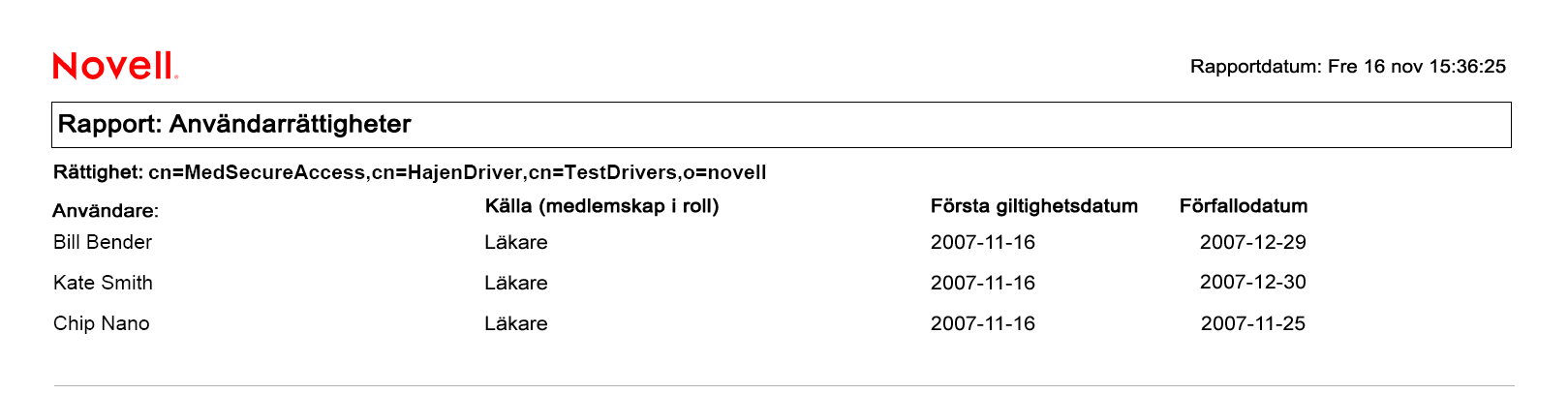 Figur 19-5 Exempel på Rapport: Användarrättigheter: Användarinformation för varje rättighet