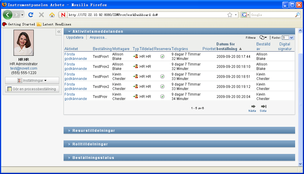 Om du går till en annan flik i Identity Manager och sedan vill gå tillbaka kan du öppna fliken Instrumentpanelen Arbete på nytt genom att klicka på den.