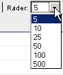 Klicka på listrutan och välj det antal rader som du vill ska visas på varje sida: