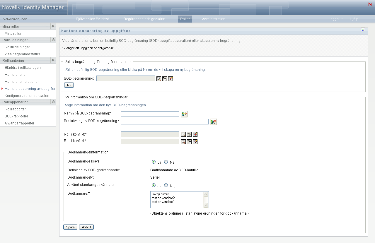Obs!Det är viktigt att de två rollerna som är i konflikt anges. Det spelar ingen roll vilken ordning du anger rollerna i.