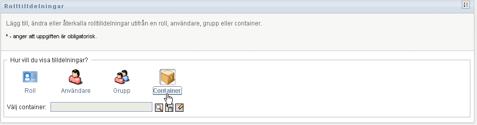 Så här begär du tilldelning av en eller flera roller till en enskild container:
