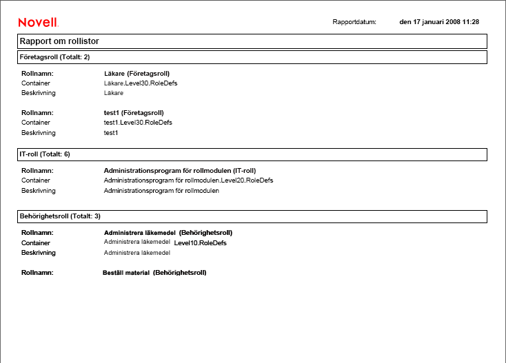 Figur 18-2 Exempelrapport om rolltilldelningar