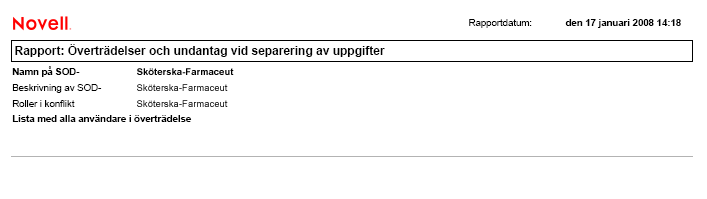 Figur 18-3 Exempel på rapport för begränsningar vid SoD