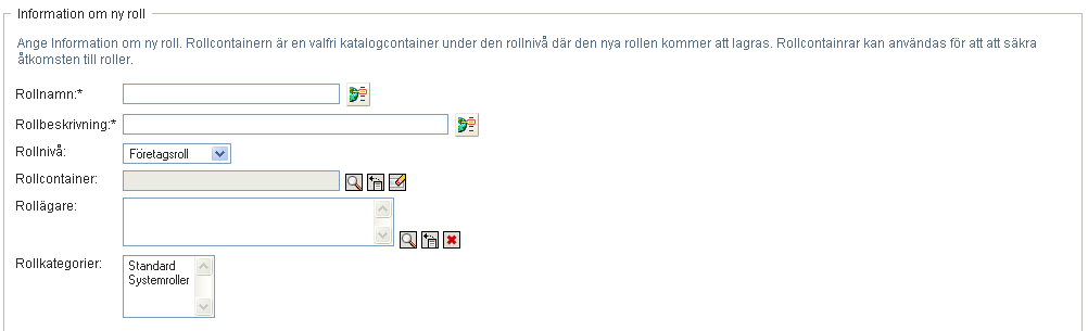 Gör det möjligt att kategorisera roller för rollorganisation. Kategorier används till filtrering av listor med roller. Flera kategorier kan anges samtidigt. |