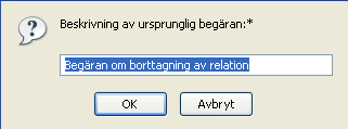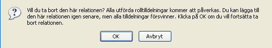 Klicka på om du vill ta bort relationen eller på om du vill gå tillbaka till sidan . Du uppmanas att ange en .