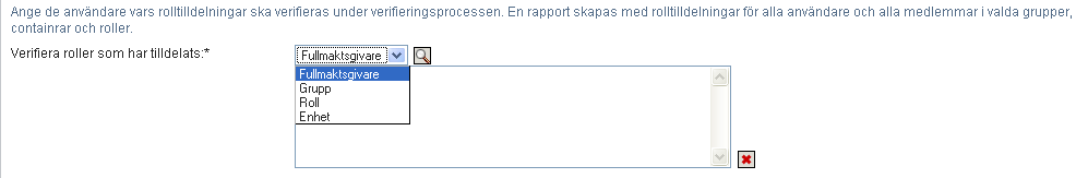 Verifierarna behöver inte ha behörighet för rollerna som tillhör de angivna användarna för att granska rapporterna. Om en verifierare som ska kontrollera en användartilldelning inte har behörighet att visa en viss roll, kan verifieraren ändå visa rapporten med användartilldelningar.