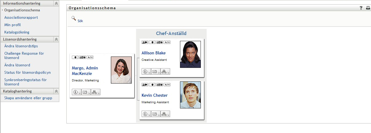 När du har loggat in i användarprogrammet Identity Manager öppnas normalt fliken och sidan Organisationsschema visas:
