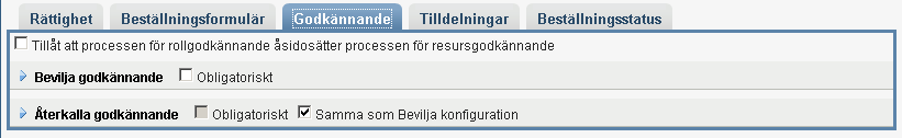 Om du har markerat kryssrutan kommer godkännandeprocessen för rollen alltid att åsidosätta godkännandeprocessen för resursen när resursen är associerad med en roll. När den associerade rollen har godkänts tillhandahålls resursen automatiskt utan att behöva godkännas.
