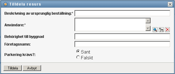 Information om hur du arbetar med beställningsformuläret finns i Tilldela en resurs från katalogen.