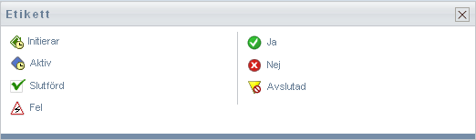 Etiketten visar en kort beskrivning av ikonerna som används på fliken . Etiketten visas i bilden nedan.