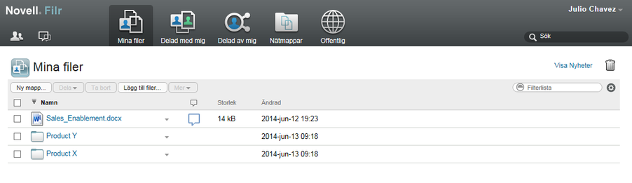 Mer information finns i Novell Filr 1.1 mobilapp – snabbstart.