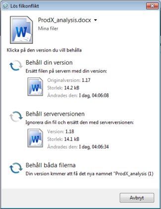 Om ett dokument redigeras samtidigt på olika platser kan konflikter uppstå.