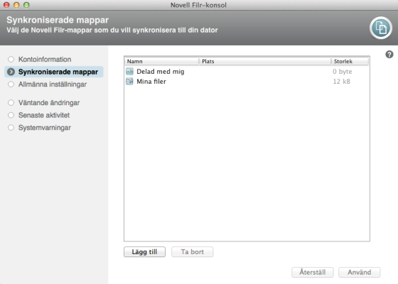 Så här konfigurerar du vilka Nätmappar i Filr som ska synkroniseras till datorn: