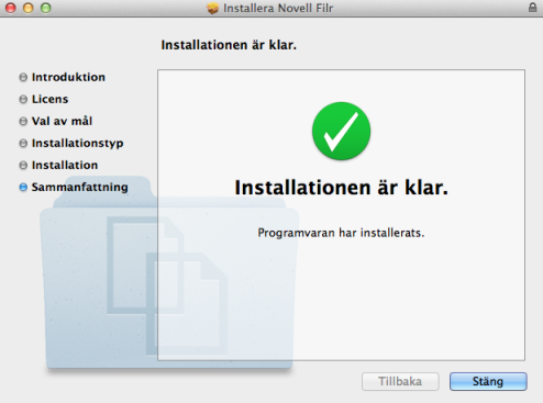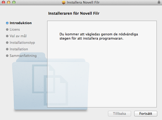 Öppna filen NovellFilr-version.pkg när hämtningen är klar.