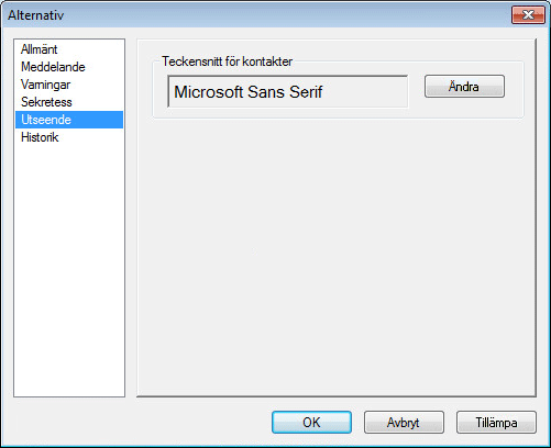 Klicka på Ändra och välj teckensnitt, stil och teckenstorlek.