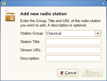 Ange information om strömmen i dialogrutan Lägg till ny radiostation och klicka sedan på .