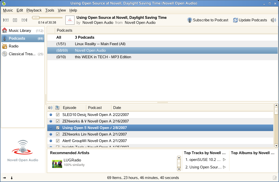I Helix Banshee kan du abonnera på, hämta och lyssna på dina favoritpoddsändningar. Poddsändning är en typ av inspelade bloggar, där användare prenumererar på en programkälla vars avsnitt hämtas och lagras för senare lyssning offline.