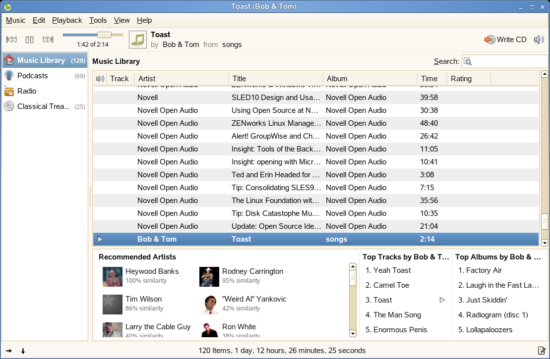 Figur 16-5 Musikrekommendationer i Helix Banshee