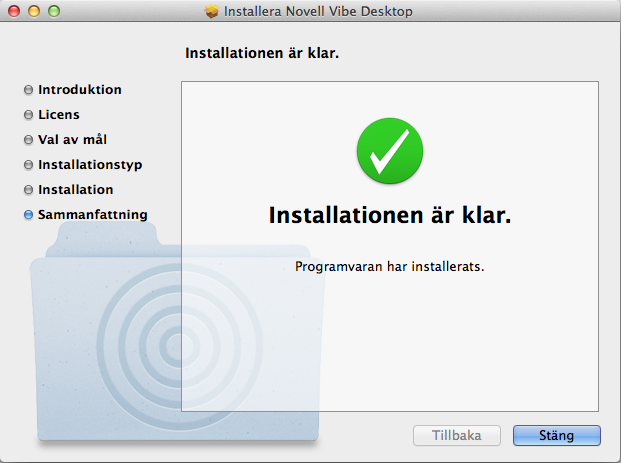 Kör den hämtade filen NovellVibeDesktop-versionen.pkg.