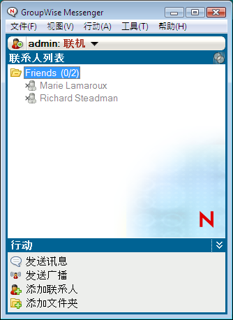 从 Novell Messenger,可以发送讯息给联机或脱机的联系人。