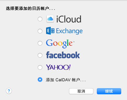 选择“添加 CalDAV 帐户”。