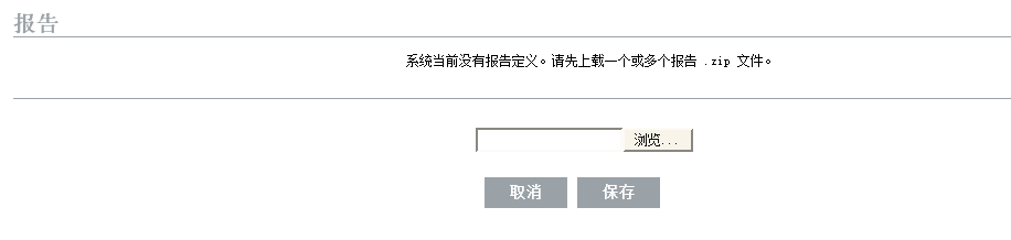Identity Audit 本身预载了报告,但新报告插件(尤其是包含报告定义和元数据的 zip 文件)也可以上载到 Identity Audit。如果系统中没有报告,将显示下面的屏幕: