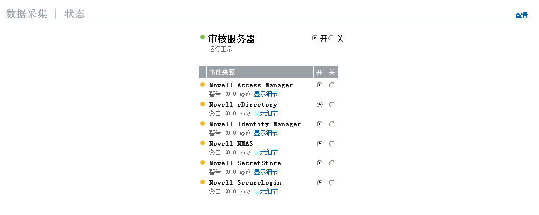 在部分,管理员可以在应用程序级别启用数据收集。这些设置会影响多个服务器的数据收集(例如,多个 eDirectory 实例)。