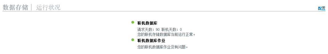 本页面显示是否有若干个数据库功能处于正常运行状态(绿色)、报警状态(黄色)或错误状态(红色)。
