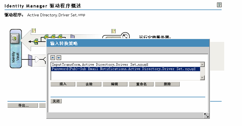 例如,Identity Manager 附带的 eDirectory 驱动程序的驱动程序配置中的输入转换策略集包含一个策略,该策略参考两个口令同步电子邮件通知模板。
