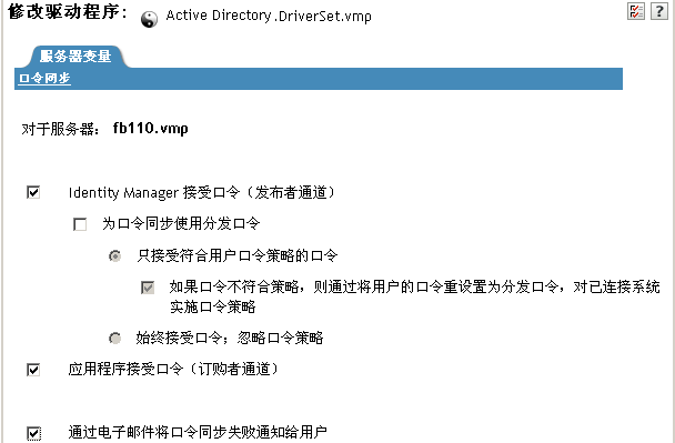 样本驱动程序配置中已提供了这些策略,也可以添加策略,详情请见部分 5.7, 升级现有驱动程序配置以支持口令同步。