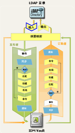 当 Identity Vault 中发生的某一事件引起已连接系统中的一项操作时,Identity Manager 就会创建一个 XML 文档来描述该 Identity Vault 事件,并通过订购者通道将它提交到驱动程序 Shim。