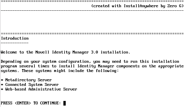 (可选)根据选择的选项(例如《Metadirectory 服务器》),系统可能会提示您设置 LD_LIBRARY_PATH 环境变量。 要执行此操作,请键入 . /opt/novell/eDirectory/bin/ndspath 以执行 /opt/novell/eDirectory/bin/ndspath 底稿,然后重新运行安装。