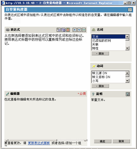 Figure 3-7 编辑器将 ds.novell 显示为文本自变量