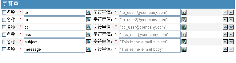 对于“发送邮件”操作,命名字符串相当于电子邮件要素: