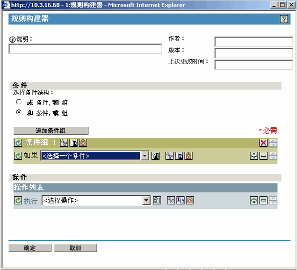 在规则构建器中,可以定义发生已定义的操作必须事先满足的一组条件。