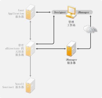 本文档仅包含有关 Designer 和 iManager 的信息。User Application 使用基于 Web 的管理页面(此处不讨论)。有关 User Application 的更多信息,请参见《User Application 管理指南》中的“管理 User Application”。