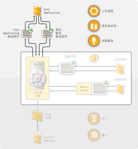 User Application 驱动程序: User Application 驱动程序储存配置信息,并在身份库中发生更改时立即通知 User Application。还可将它配置为允许身份库中的事件触发工作流程,并向 User Application 报告工作流程供应活动的成功或失败情况,以便用户可以查看其请求的最终状态。