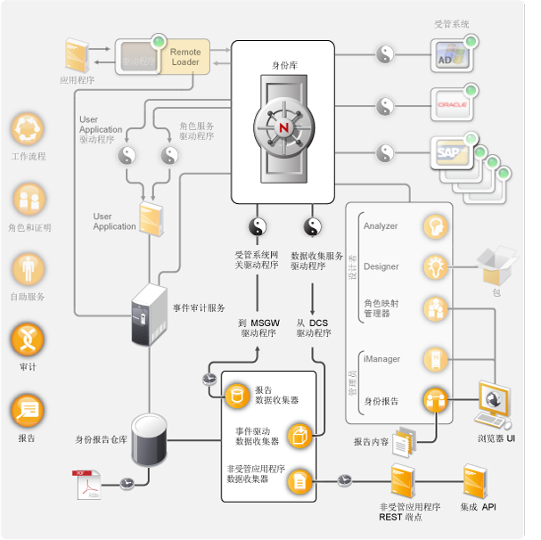 报告数据收集器: 使用拉式设计模型从一个或多个身份库数据源中检索数据。它根据一组配置参数确定的周期定期运行收集。为了检索数据,收集器需调用受管系统网关驱动程序。