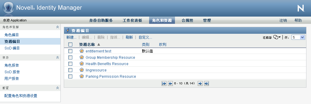 如果您未被授予导航访问权限,则角色和资源选项卡上的一些菜单可能不可用。